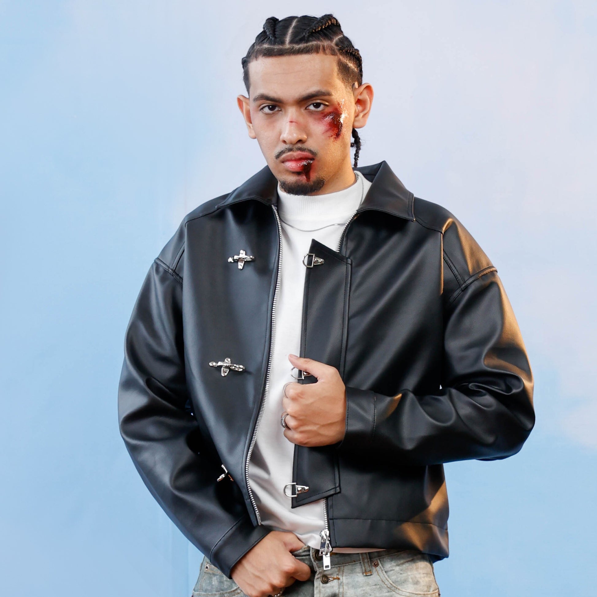 Leather Fireman Clasp Jacket